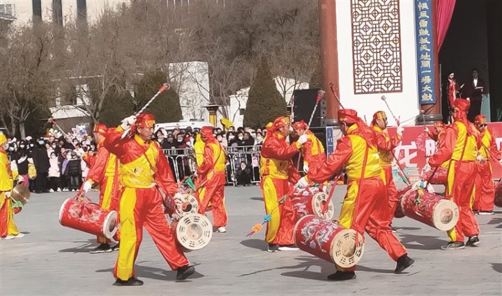 2月11日,來自會寧縣會師鎮(zhèn)的社火隊(duì)在紅軍會寧會師舊址景區(qū)表演,為廣大游客送歡樂。常琦彪   攝...